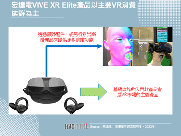 拓墣观点: 宏达电在CES 2023发表新一代VR装置VIVE XR Elite,该装置延续VIVE Flow设计,并支援手部追踪操作,也能透过外部RGB相机模组提供AR功能。此外,VIVE XR Elite電池為可拆卸式,能提供2小時電池續航力,產品售價為1,099美元/[...]